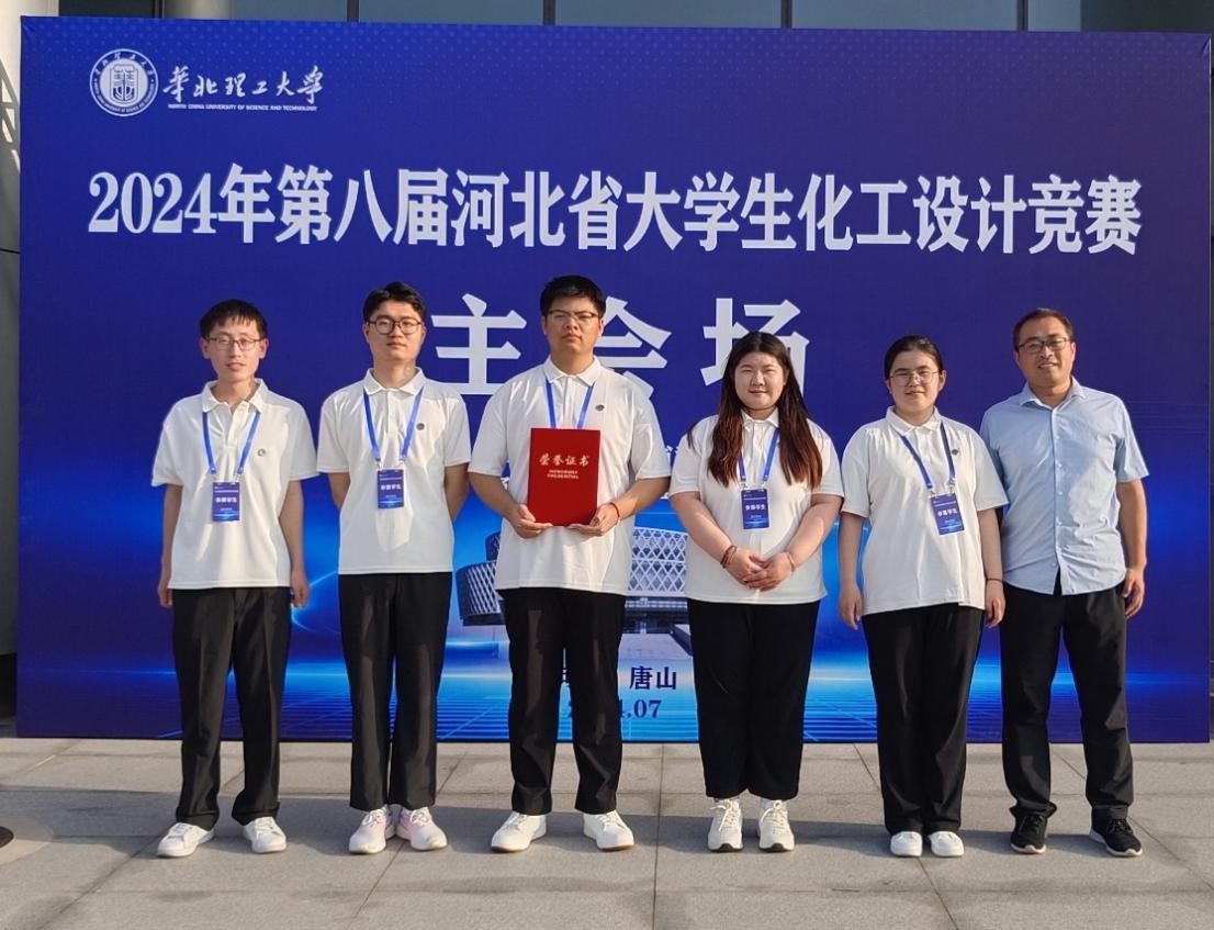 2024年7月26日至29日,河北省第八届大学生化工设计竞赛在华北理工大学顺利举行。经过两天的激烈角逐,由我院谢江维、刘璐、刘艳平等老师指导,邱国杰、郝梁浩、李佳欣、胡佳敏、樊智诚等5名同学组成的“满面醇风”队以优秀的设计作品和精彩的答辩,在河北省26所院校中脱颖而出,荣获河北省总决赛一等奖。