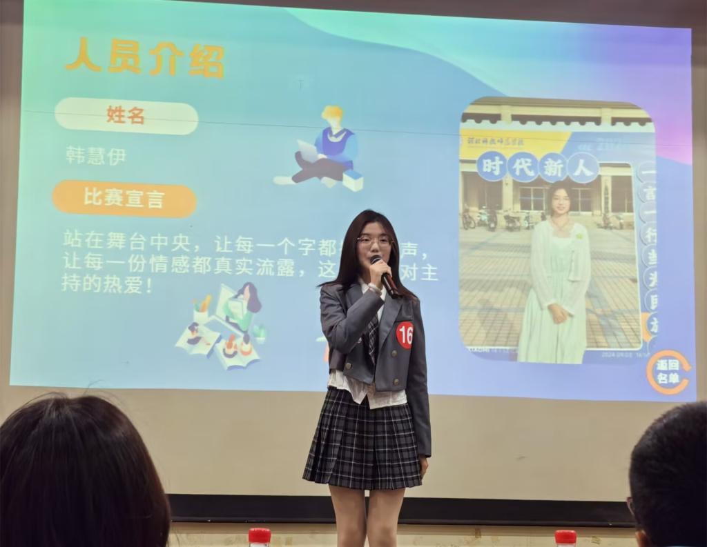 比赛分自我介绍、美文朗诵、绕口令和自备稿件主持四个环节。两位选手凭借稳定的发挥,在17名选手中脱颖而出,分获第二名和第三名,晋级三校区总决赛。