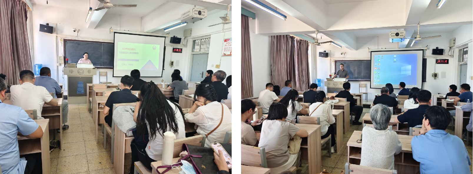 1:化学(左)、化学工程与工艺(右)专业负责人正在进行工作汇报。